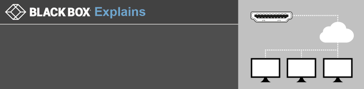 Black Box offers HDMI over-IP extenders that enable you to transmit HDMI video and audio over an Ethernet network to a virtually unlimited number of screens as far as your network reaches. Like this you can extend audio/video from one source to a single screen (unicast) or distribute (multicast) the same content to multiple screens.
